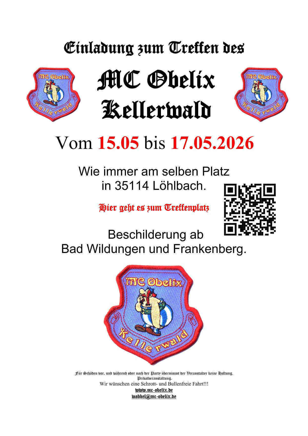 Für Anreisende aus Richtung Bad Wildungen kommen gibt es eine Änderung der Route zum Treffenplatz, da die Ortsdurchfahrt Löhlbach aus dieser Richtung kommend saniert wird.